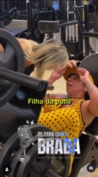 Interessante notar que raramente percebemos exposição dos riscos das cirurgias nesses perfis, tampouco indicações a respeito de procedimentos preparatórios para as intervenções. Os possíveis ganhos são sempre destacados, enquanto quaisquer aspectos desagradáveis do processo de mudança da estética, como a dores do pós-operatório ou a renúncia temporária a hábitos cotidianos são omitidos ou minimizados. O fenômeno pode ser analisado à luz da mudança no sentido e função da dor na sociedade contemporânea, marcada pela busca de positividade e minimização da negatividade (Han, 2021). No contexto da estética neoliberal, a superação ou o mascaramento da dor é uma estratégia crucial, já que a negatividade e o sofrimento contrastam com os ideais de beleza e desempenho promovidos. Analisando os perfis de instrutores pessoais de musculação, percebe-se uma ênfase no enfrentamento e na superação da dor, frequentemente resumida na expressão “sem dor, sem ganho”. A maioria dos conteúdos ocorre na academia, com ênfase nas técnicas de musculação e na rotina de exercícios. No entanto, o destaque reside na forte carga dramática e emocional que caracteriza a relação entre a treinadora e aluna, conforme ilustrado na Figura 2, retirada do perfil da personal trainer @spso, cuja marca é a frase “de cara com a braba”.