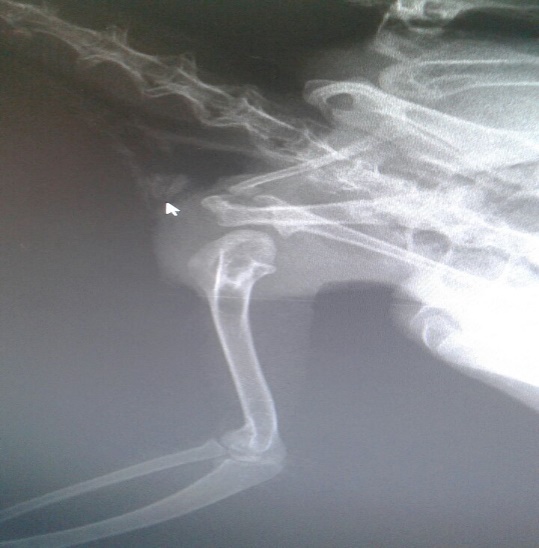 El ave fue dada de alta con terapia antibiótica con amoxicilina clavulonato 20 mg/kg oral cada 12 horas por 6 días, desinfección de la herida quirúrgica con clorhexidina cada 12 horas por 8 días, a los 10 días fueron retirados los puntos de sutura con una herida cicatrizada, se hizo seguimiento del paciente dos meses después del procedimiento sin recidivas.