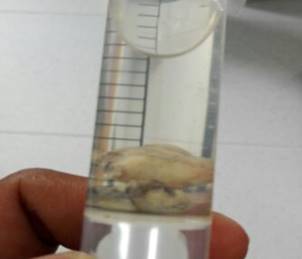 Se pudo observar que el nódulo, no estaba adherido al tejido muscular y que su presencia solo era subcutánea (Figura 2), una neoformación móvil de consistencia firme, color pardo amarillenta aproximadamente y de 1cm x 1.5 cm (Figura 3).