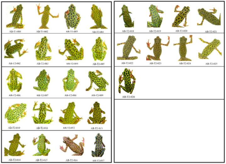 Abstract: Atelopus balios is a toad endemic to Ecuador, with a threatened category due to change in plant cover and environmental pollution. It is unknown about their populations and ecological interactions. This study discloses a baseline on population size and some ecological aspects. During October and November 2017, the population size of A. balios was estimated in a locality of Naranjal, foothills of the western mountain range, Ecuador. Two linear transects of 1000 meters were carried out in two rivers of the region, where two daytime sampling of capture-recapture was performed through visual encounter surveys, and photoidentification was used to estimate population size. Also there was evaluated its corporal size, population structure, used substrate, its activity, and its vertical and horizontal distribution. We obtained 32 records that correspond to 29 only individuals (T1 = 3 ind and T2 = 26 ind). The male/female ratio was 8.6:1. In T1, the population estimator could not be applied. In T2, 52.25±EE18.64 individuals were estimated. We found that 59.37% used leaf substrate, 75% had activity moving at the time of capture, its vertical distribution is between 20 and 250 cm high, its horizontal distribution was between 20 and 1000 cm. It is unknown about the presence of quitridium, but it is considered important to diagnose its presence and prevalence. Although the abundance in both transects varies, populations are considered stable and their fluctuation is normal. So it’s important to perform monitoring.