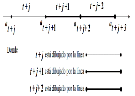 Donde por definición at+j , para todo j= − n, − n + 1, − n + 2,…….,0,1,2,3,........, n, se llamarán momentos. La hipótesis sobre el tiempo se puede representar en el siguiente diagrama: