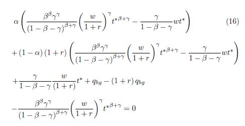 La solución del equilibrio general se realizará en el estado estacionario, es decir, en aquella situación en la que las variables son constantes en el tiempo, razón por la cual en esta sección se prescindirá de los subíndices temporales. La solución del equilibrio se realizará con base en las Ecuaciones (13) y (15).