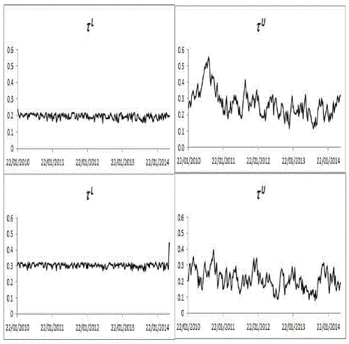 For this study, the conditional tail dependence measures were estimated following Patton (2006). The lower τL and upper τU tail coefficients are supposed to be time dependent. The evolving dynamic is as follows: