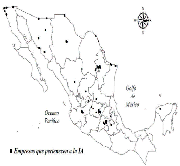 En la actualidad la IA está representada por 259 empresas que ofrecen más de 34 000 empleos en 18 entidades, principalmente del centro y norte del país (ProMéxico, 2013), de las cuales sobresalen cinco (Baja California, Sonora, Querétaro, Chihuahua y Nuevo León) por concentrar 76% del total de las empresas del sector. En el Plan Nacional de Vuelo estas entidades son señaladas como las “regiones” más importantes de la industria aeroespacial en el país, se considera que tanto sus capacidades como su especificidad y nichos industriales, lo que constituye su vocación productiva emergente, pueden favorecer el desarrollo del sector en territorio nacional; destacan las posibilidades de la manufactura de maquinados de precisión en Chihuahua; el desarrollo de sistemas de fuselaje y plantas de poder, así como los servicios basados en conocimiento de alto valor (KPO) en Baja California; la manufactura de turbinas para Sonora; ingeniería para el diseño de turbinas, ensamble de partes complejas del fuselaje y mantenimiento especializado para Querétaro y actividades de soporte de metalmecánica y de manufactura en Nuevo León (ProMéxico, 2013b).