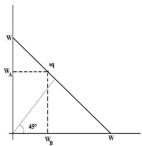 The wealth available in the economy is denoted by W ∈ ℝ+ such that, given the allocation of wealth in the economy, Wi ∈ ℝ+ denotes the sum of the endowments of wealth of individuals who belong to social group Vi such that i ∈ { A, B}.