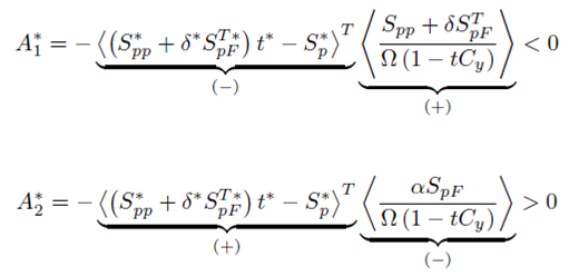 In the foreign country, welfare-improving conditions depend on the definiteness of the matrix of indirect effects on production and consumption δ∗SpFT∗ , which is negative semidefinite due to the assumptions previously made. Therefore, for the foreign country coefficients and have the following sign: