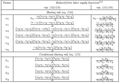 Table A1.2 in Appendix 1 shows the parameters of the sharing rule (10) and its conditional version (17) in terms of the parameters of the reduced-form labor supply functions.