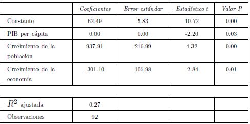 Esta evidencia tiende al mismo tiempo a reforzar la hipótesis de una alta segmentación del mercado de trabajo en México. Si este mercado hubiera estado mejor integrado el exceso de mano de obra debería haber sido absorbido por el sector formal de la economía, lo que habría promovido un mayor crecimiento del PIB en su conjunto y, por tanto, un menor diferencial entre el crecimiento del PIB per cápita de México y el de los países del Este europeo. En cambio, el rápido aumento de la población tiene que haber promovido el crecimiento del sector informal, el sector residual de absorción del exceso de mano de obra. Como lo muestra el Cuadro 5 del Apéndice y la Gráfica 14, una buena parte de la informalidad es predecible en función de las condiciones agregadas del mercado de trabajo, es decir, de que tan rápidamente crecen tanto la oferta de trabajo (i.e., la tasa de crecimiento de la población) como la demanda por trabajo (i.e., la tasa de crecimiento de la economía).