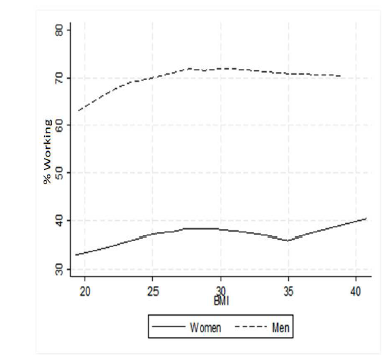 Our results, using ordinary least squares (OLS) for estimation, show that an increase in the BMI has no effect on employment for either men or women.