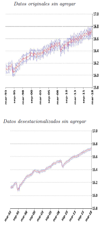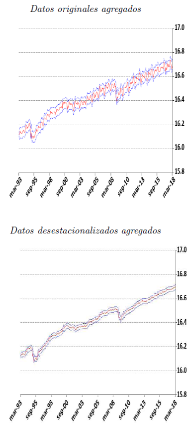En el análisis se consideran los datos originales y desestacionalizados,7 estos últimos para remover factores estacionales periódicos debido a que su presencia puede dificultar el diagnosticar o describir el comportamiento de una serie económica, al no poder comparar adecuadamente un determinado mes con el inmediato anterior.