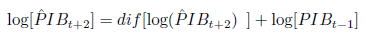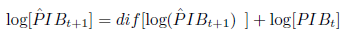 Posteriormente, se obtienen los logaritmos del PIB mensual a través de las siguientes relaciones estándares.