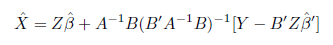 La variable X y el vector de parámetros β se obtienen minimizando la función de pérdida sujeta a la restricción Y = β' , así el estimador lineal insesgado de X esta dado por: