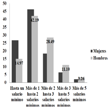 Todo este proceso indudablemente refleja dos hechos neurálgicos. Por un lado, muestra una profunda polarización salarial en el empleo informal en México y, por otro, hace patente que la polarización salarial se amplifica cuando analizamos el caso del empleo femenino, lo cual, probablemente, está vinculado con las ocupaciones que ellas realizan.