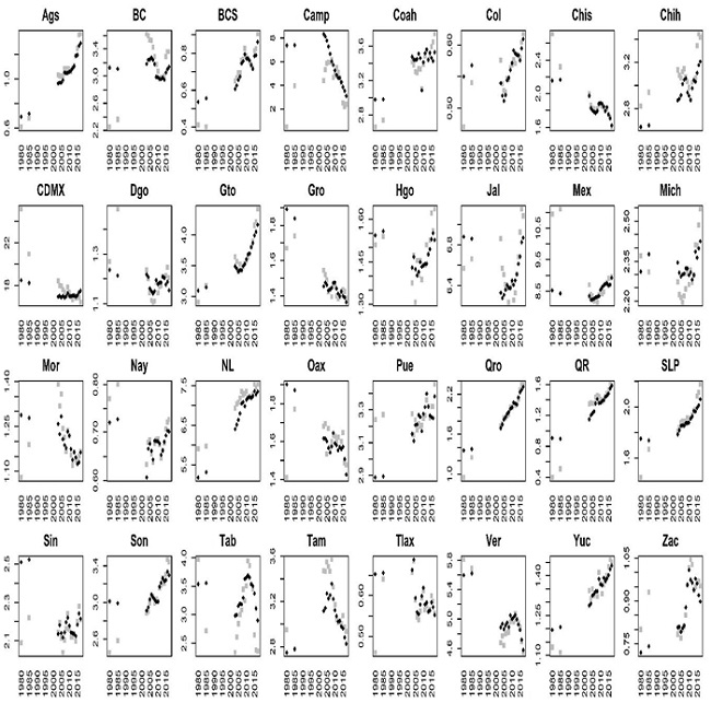 Asimismo, nótese que el INEGI (2019) afirma que la información del año 1985 no es comparable, en estricto sentido, con las estimaciones referidas a 1970, 1975 y 1980, hecho que justifica, aún más, el usar sólo información en términos reales.