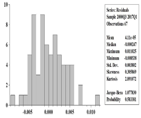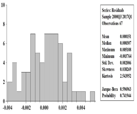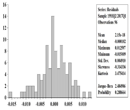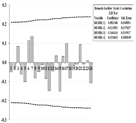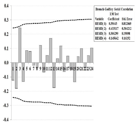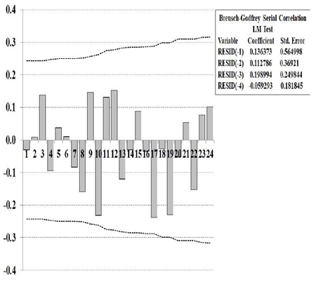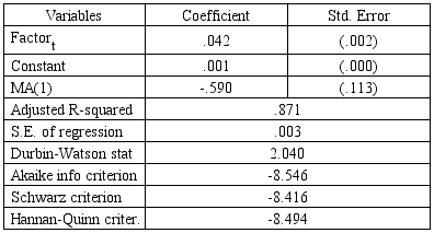 is the error term, which I assume to be white noise with normal distribution. The estimation of equation (8) is held by the generalized least squares (GLS) technique by using the Cochrane-Orcutt method.