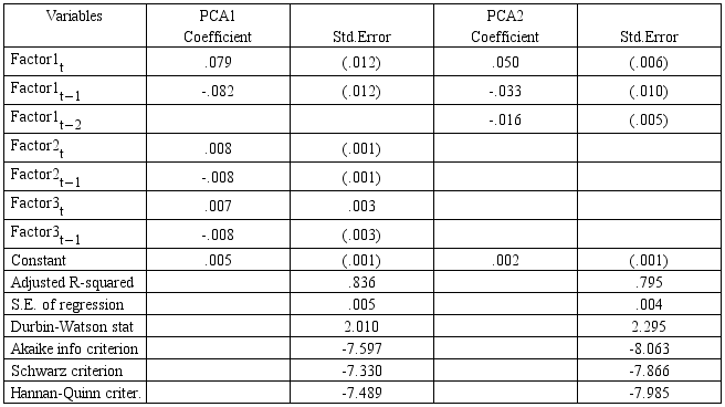 The practical example for the PCA estimation is shown in table 3, where data is available until July 2017. This model is the latest available using estimations made in real time (the autocorrelation analysis and the normality test are shown in appendix A3.3).