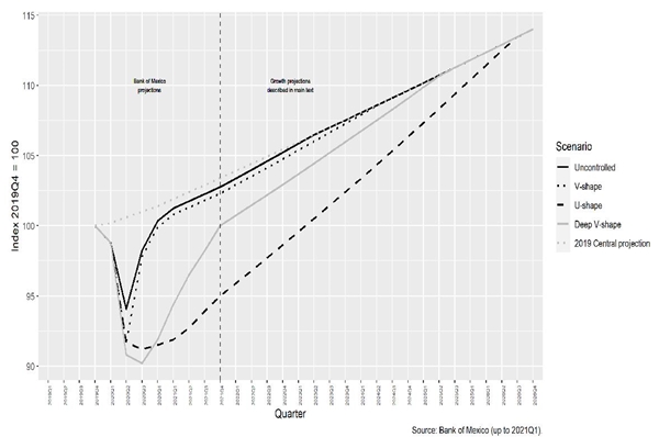 The total economic effect of the COVID-19 epidemic in Mexico is as difficult to forecast as the duration of the pandemic itself. New waves of contagion or a too-early lift of restrictions could lead to a new set of mitigation measures that make the cost higher. Moreover, together with the direct effects of the epidemic, the Mexican economy faces an adverse future scenario in which important sources of revenues, such as tourism, remittances, and the oil industry, are expected to perform badly. These factors will influence the depth of the downturn and the speed of recovery.