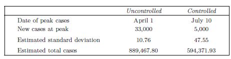 I take the peak dates and the maximum number of daily cases at the peak as given and recover the full distribution of cases under the two scenarios.2 I assume the uncontrolled and controlled peak dates are April 1 and July 10, respectively, and that peak heights are 33,000 and 5,000 cases, respectively, based on CONACYT’s projections (Quiroga et al., 2020)