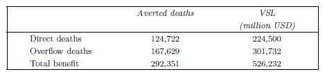 In the following sections I provide estimates of the benefits of mitigation policies in terms of averted deaths and compare these benefits to the costs of the control in terms of aggregate output.