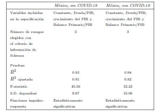 En particular, se estimó el siguiente modelo de vectores autorregresivos en series de tiempo para México: