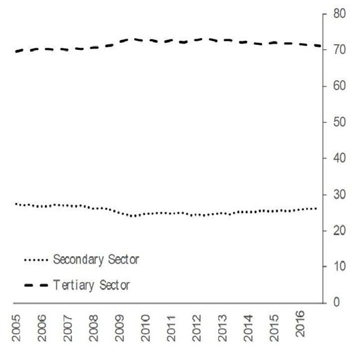 Given that Mexico does not have unemployment insurance, workers who become unemployed immediately face the pressure to find a new job. The wage flexibility of the informal sector allows it to absorb most of the people who cannot find a job in the formal labor market; and workers who would otherwise be unemployed can find a job there. As a result, the unemployment rate in Mexico is low: it includes only frictional unemployment and a fraction of the cyclical unemployment that is absorbed by the informal sector.