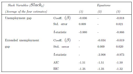 represents how far the slack in the labor market is from zero. We analyze whether for periods in which