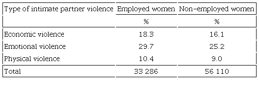 Table 1 shows the percentage of women who have struggled with at least one episode of abuse. As it can be observed, a higher percentage of employed women have experienced abuse compared to non-employed women in all three categories, highlighting the male backlash model. Emotional violence is the most common abusive be haviour, with 29.7% of employed women and 25.2% of non-employed women facing emotional abuse at least one time.