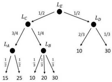 Notice that . We can represent the process of composing the lotteries with the tree scheme given in figure 1.