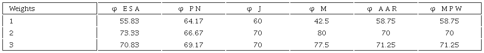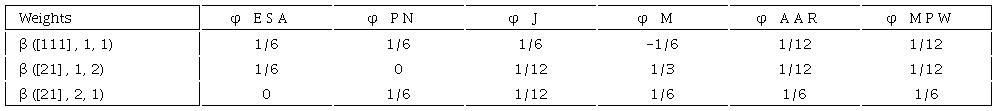 Example 5: We look at the system of weights for the different solutions described above in the case n = 3. For this particular case, there are 3 different weights associated with the transfers procedure: