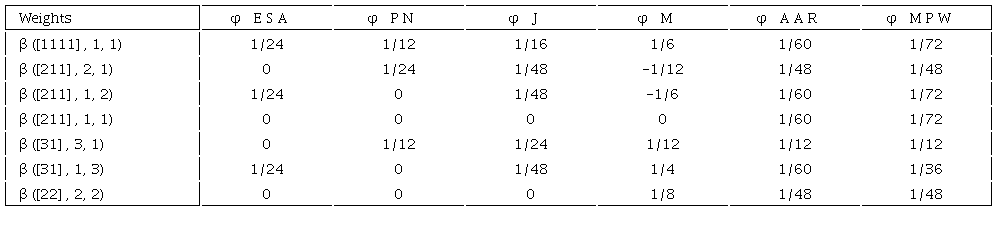 Now, for the case n = 4 there are 7 different weights associated with the transfers procedure (table 6):