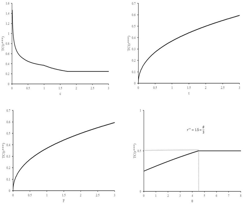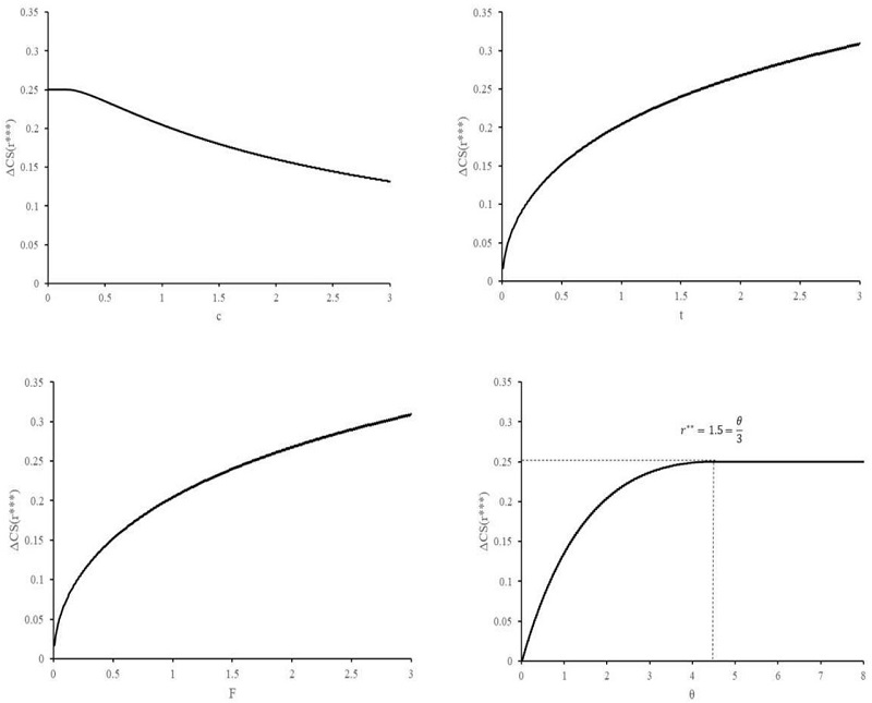 Corollary 2. The difference in social welfare Δ𝐶𝑆(𝑟,𝑐,𝑡,𝐹,𝜃) satisfies the following properties at 𝑟* **: