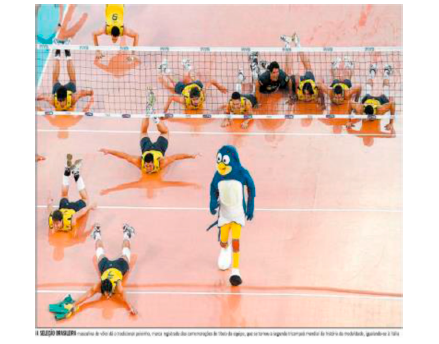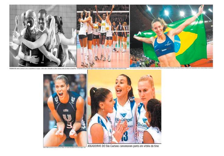 El periódico se seleccionó por ser de alto tiraje (no declarado) y principalmente por tener gran circulación en Brasil. 5 Por lo tanto, nos detuvimos a interpretar imágenes (fotos) y textos (leyendas) introducidos en el periódico mencionado. Las modalidades analizadas, como voleibol y atletismo, también fueron aquellas más tratadas en los medios de comunicación deportivos escritos.