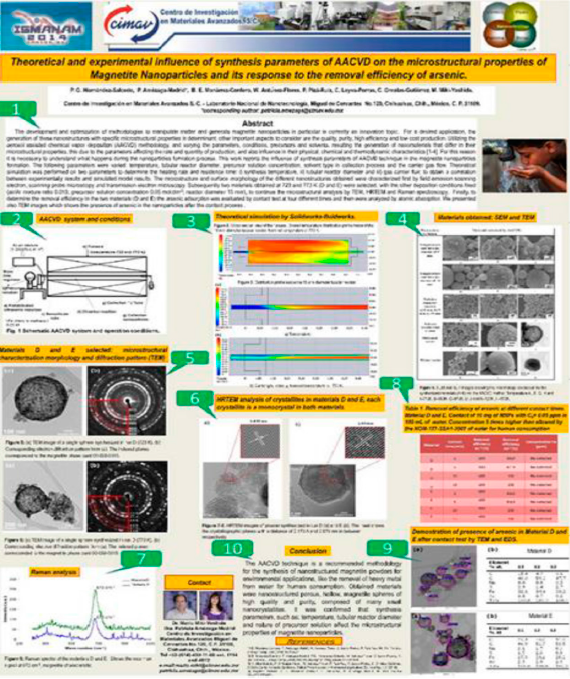 Partir de un marco teórico centrado en el papel de las representaciones en los procesos de comunicación y aprendizaje en el laboratorio nos preparó para buscar este tipo de elemento en el centro de investigación bajo estudio. Por esta razón, los pósteres o carteles científicos elaborados por los investigadores y pegados en las paredes del laboratorio, llamaron nuestra atención desde el primer día. Después de la publicación en revistas especializadas, los pósteres son una de las formas más importantes de sintetizar y presentar los resultados de la investigación, por lo que toda conferencia del campo incluye una exposición de pósteres en donde los asistentes se detienen a leer las representaciones y a hacer preguntas a sus autores. Evidentemente, esto quiere decir que el significado de las representaciones es ampliamente compartido y constituye en sí mismo un lenguaje que requiere de códigos de interpretación con mayor o menor grado de complejidad. Las facultades de ingeniería y ciencias cuentan generalmente con concursos de pósteres en donde no sólo se premian los avances científicos, sino la capacidad para sintetizarlos. Como señalamos antes, la interpretación de representaciones requiere conocer no sólo conceptos teóricos, sino leer y poder usar notaciones matemáticas de distintas disciplinas; conocer las particularidades de los equipos usados para analizar las propiedades de las partículas a fin de poder emplearlos para el análisis requerido y leer los resultados; ser capaz de construir e interpretar gráficos, diagramas, ilustraciones, etcétera.