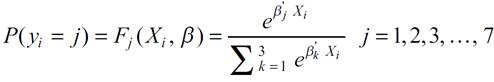 Donde X es un conjunto de variables que informan sobre la posición social y el sexo del i-ésimo individuo y que afectan la probabilidad de estar en el tipo j-ésimo, y β es el vector de coeficientes a ser estimado.