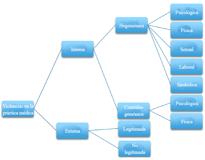 Clasificamos las violencias relacionadas con la práctica médica con base en dos principios: la pertenencia de los actores al campo médico y la consistencia con las relaciones de poder características del campo médico.