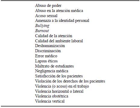 La VIH ocurre entre actores del campo médico y, al descansar en las jerarquías que estructuran el campo, cuenta con una amplia legitimidad que se expresa como aceptación pasiva o reconocimiento de que “así son las cosas”. Este tipo de violencia es parte del habitus de los profesionales de la salud, que se adquiere durante la formación profesional e incluye esquemas de percepción y apreciación que son producto de la incorporación de relaciones de poder y violencia (Castro & Erviti, 2015). Al ser parte de su habitus, la VIH es normalizada por casi todos los actores que conforman el campo médico. Tanto es así que, hasta ahora, no existía un término de uso común para denominarla. En la bibliografía consultada se hace referencia a ella con múltiples vocablos que fraccionan el problema y muchas veces encubren su dimensión sociológica (cuadro 2). Este adormecimiento de la conciencia respecto de la VIH contrasta notoriamente con la sobresensibilidad ante la VICH y otras hostilidades que desafían el estatus profesional de los actores de salud.