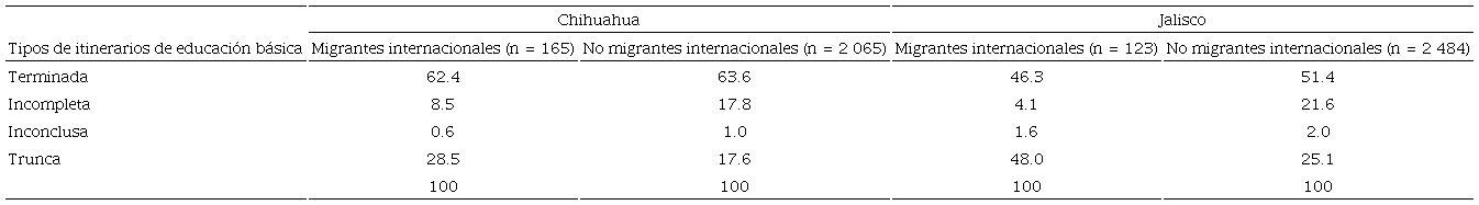 El ejercicio empírico de las encuestas en Chihuahua y Jalisco nos permitió arribar a la certeza de que la migración de Estados Unidos a México trae consigo la exclusión de la educación escolar. Las diferencias entre los migrantes internacionales y los no migrantes son significativas, especialmente en el caso de Jalisco. En este estado, dado que la migración de retorno es más antigua que en Chihuahua, los resultados muestran más claramente la asociación entre migración y exclusión, mientras que en Chihuahua no se puede saber aún en qué medida estarán asociados ambos procesos.