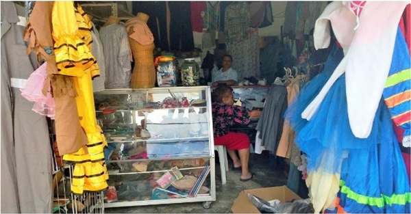 Desde la calle, el local de Matilde se ve como una minúscula habitación atiborrada de ropa. Las paredes de la habitación están llenas de clavos en los que se cuelgan blusas, bolsos, vestidos, ropa para trabajo y disfraces infantiles. Al entrar, se pueden observar algunas cajas en el suelo usadas para guardar ropa de bebé y dos vitrinas en las que se ubica una gran cantidad de zapatos y unos cuantos artículos de bisutería -como aretes y collares-. Sobre una de las vitrinas hay dos tarros plásticos llenos de dulces. Varias sillas para el uso de los clientes se encuentran en los espacios libres. Entre la atención de un cliente y otro, Matilde apunta en su cuaderno de fiados, dobla y organiza hábilmente la ropa, zapatos y bisutería que los clientes sacan de los estantes y bajan de las paredes para luego amontonarlo todo sobre las vitrinas.