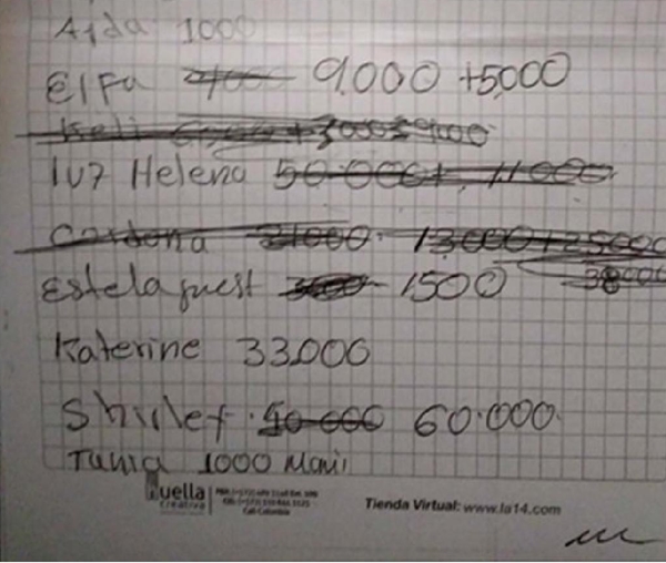Formar parte de la economía informal parece ser también el común denominador entre los clientes de Matilde: “Por acá el que tiene un trabajo formal y con un sueldo fijo es muy raro, la mayoría de la gente vive con el diario, por eso es muy difícil vender sin fiarles o hacerles descuentos, porque si no, simplemente no pueden comprar”. La precariedad de los ingresos de la propia Matilde se evidenció durante una de las entrevistas, en la que le pedí que hiciera un presupuesto para el siguiente mes. Hicimos cuentas sobre los gastos mensuales que tendría: 918 mil pesos colombianos en total (incluidos los servicios de casa y local, gastos diarios en alimentación, alquiler del local, compra de mercancía y pago de cuotas para la cadena de ahorro y la asociación local de ahorro y crédito de la que forma parte). Calcular los ingresos que tendría en ese mes fue mucho más difícil, pues no tiene ninguna entrada fija, ni sueldo, pensión o subsidio. Como ella bien lo describe, sus entradas “son diarias y no todos los días se vende la misma cantidad”. La dificultad para proyectar las entradas de Matilde durante el mes se hizo más evidente cuando me dijo que no podía calcular con certeza cuánto dinero iba a recibir como pago de las deudas por concepto de fiado, pues no estaba segura de “que todos me vayan a pagar a tiempo, y no sé si van a pagar completo o sólo van a abonar”. A pesar de la incertidumbre, Matilde no contempla la opción de dejar de fiar; de hecho, considera que, dado el contexto de precariedad económica, ésta es una práctica intrínseca a su negocio: “aquí fiar es vender”.