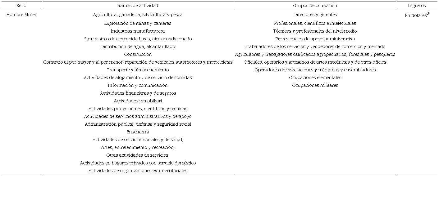 En este contexto, las variables que se estudian en esta investigación para analizar tanto la segregación horizontal como vertical son tres: “Ramas de actividad”, “Grupos de ocupación” y “Sexo”, tal como se describe a continuación: