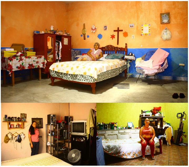 El dormitorio personal, como aquel espacio recuperado, tiene como significado la recomposición de la vida íntima, es donde las mujeres se permiten el goce del cuerpo en soledad. A propósito, Marcela Lagarde (2015, párr. 5) propone que “La soledad puede definirse como el tiempo, el espacio, el estado donde no hay otros que actúan como intermediarios con nosotras mismas. La soledad es un espacio necesario para ejercer los derechos autónomos”. Esta soledad física que se configura en los espacios íntimos de las recámaras, lugares de autorregulación, donde se gesta para las mujeres excarceladas la autonomía del cuerpo y su poder de decisión sobre el uso del tiempo y el espacio físico. Visualmente, esto es la reconstrucción de la libertad negada por la prisión. En las imágenes de las recámaras los símbolos ayudan a entender esa autonomía (figura 2), sobre todo, por medio de la coloración visible en los espacios: azul rey, anaranjado, amarillo limón. Es evidente que pintan sus recámaras con colores contrarios a los que se usan en la prisión: beige, azul marino, amarillo, blanco y negro. Los objetos que se encuentran en las habitaciones me hacían comprender que los espacios de las mujeres, se convierten en recursos de resguardo de la vida íntima y albergan elementos negados en la prisión: perfumes, espejos, ropa de colores, gorras, camas, fotografías familiares, televisión, bocinas para escuchar música, computadora y aparatos para hacer ejercicio. Éstos son sus bienes materiales más preciados, que contribuyen a redefinir su identidad y ayudan a recuperar su autonomía una vez libres. Al estar “afuera” pueden reconstruirse y reencontrarse haciendo esas reconversiones estéticas en su territorio más personal.