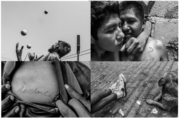 El delito y la violencia no los define por completo como varones. Los jóvenes me hicieron notar cómo la definición de sí mismos ha sido opacada por una visualidad hegemónica. Con este reclamo público en mente, decidieron escoger algunas fotografías de mi trabajo documental en el mencionado grupo de discusión (figura 3), las cuales consideraron que sustentan ciertos elementos de una imagen masculina digna sobre ellos mismos. Esta contravisualidad puede observarse en la manera que enfrentan la precariedad haciendo malabares, cómo tejen una hermandad con el uso de estupefacientes (inhalan diluyentes), y que se tatúan el nombre de su amor en el corazón o simplemente, como cualquier persona, pueden pasar la tarde en compañía de sus mascotas. Por supuesto, los jóvenes que han sido criminalizados en este barrio tienen una identidad que sobrepasa lo que queremos ver. Son personas que buscan, desesperadamente, otros medios para mirarse a sí mismos fuera de los circuitos hegemónicos de visualización que dañan su imagen.