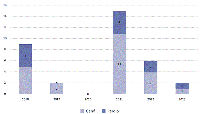 En la siguiente figura, se resume la información relacionada con las elecciones de gubernaturas del período 2018-2023, enfatizando la cantidad de victorias obtenidas por MORENA y sus aliados del total de elecciones disputadas.