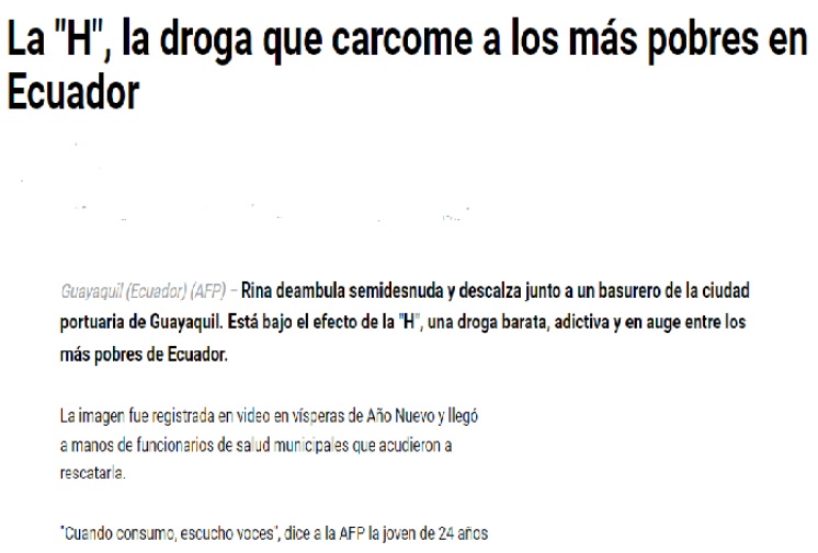 France24 (2023). La H, la droga que más carcome a los más pobres del Ecuador. https://www.france24.com/es/minuto-a-minuto/20230119la-h-la-droga-que-carcome-a-los-m%C3%A1spobres-en-ecuador