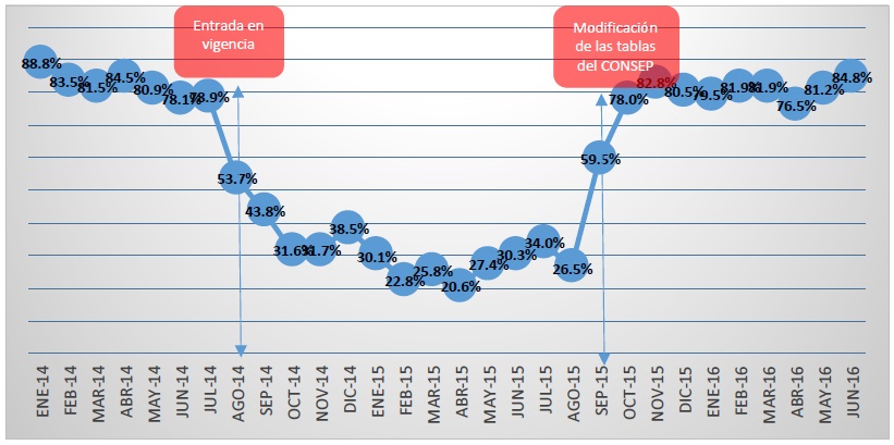 Esta decisión de reformar las tablas no salió de la nada, pues su justificación se generó en función de establecer una lucha frontal contra el microtráfico y el creciente pero marginal consumo de heroína entre la población juvenil en ciertas ciudades del Ecuador. Pese a ello, el alcance de la medida no sólo afecto al consumo y al tráfico de heroína, pues días después se hizo una reforma total a la tabla del tráfico de todos los tipos de drogas basada en la justificación policial de que esos instrumentos estaban incentivando el tráfico y consumo de drogas a menores de edad en los colegios y escuelas. Consecuentemente, se redujo las escalas del tráfico aprobadas en el año 2014 para hacer más tenue la línea entre microtráfico y consumo; es decir, ahí donde el consumo y el tráfico a menor escala se traslapan (Paladines citado por Vélez, & Gudiño, 2017).1