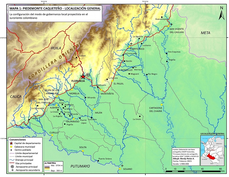 A la luz del caso del piedemonte caqueteño, una región localizada en el suroriente colombiano que en los últimos años se ha convertido en objeto de una creciente intervención por parte de diversas agencias gubernamentales y no gubernamentales, este artículo intenta desentrañar el funcionamiento del modo de gobernanza local proyectista que ha surgido y se ha consolidado en dicha zona. En efecto, los procesos de negociación y firma del acuerdo de paz entre el gobierno nacional y las extintas Fuerzas Armadas Revolucionarias de Colombia (FARC), así como la renovada preocupación por la crisis ambiental, generada por el notable incremento de las tasas de deforestación registrado en los últimos años en regiones como la Amazonía (GACD, 2018; Monsalve, 2018), han volcado el interés hacia esta zona localizada en la confluencia de la cordillera de los Andes y la cuenca amazónica.