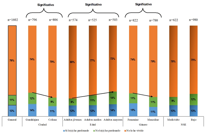 Por lo que corresponde a las emociones, el NSE señala que las mejores condiciones de vida del nivel medio/alto repercuten en una mayor intensidad de emociones positivas, así como una mayor tolerancia moral, mientras que el nivel bajo se encuentra más adherido a los valores tradicionales y las emociones negativas son más frecuentes. En cuanto al género, fueron claras las desigualdades emocionales, dado que fueron mejores y más intensas para ellos que para ellas, así como el que sean ellas quienes desarrollan mayor trabajo emocional para perdonar a sus parejas.