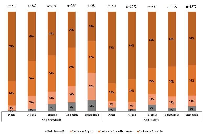 Pasemos ahora a las emociones experimentadas en las relaciones sexuales; en primer término las que atañen a la relación con la pareja formal contenidas en el gráfico 7.