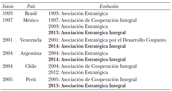 En términos de nombres, se puede decir que, aunque las denominaciones “asociación estratégica” y “asociación estratégica integral” son las más recurrentes, en muchos casos éstas reciben “apellidos” ad hoc. Algunos casos son los siguientes: