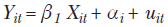 En donde Y es la variable dependiente para la unidad i en el tiempo t; X es la variable explicativa para la unidad i en el tiempo t; β es el coeficiente de la variable X; αi es el intercepto para cada unidad; y uit es el término de error.